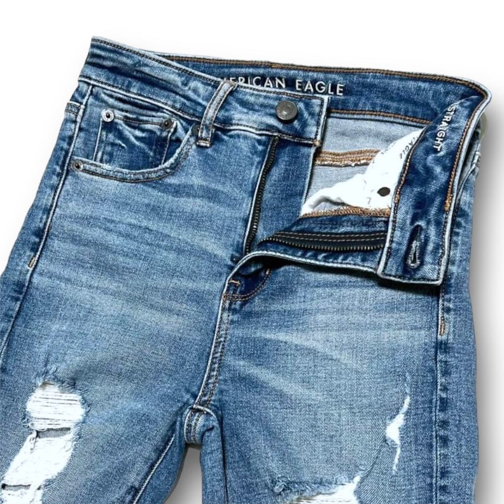- アメリカンイーグル スリム ストレート ダメージ加工 ストレッチ デニム パンツ ジーンズ サイズUS 0 ショート
