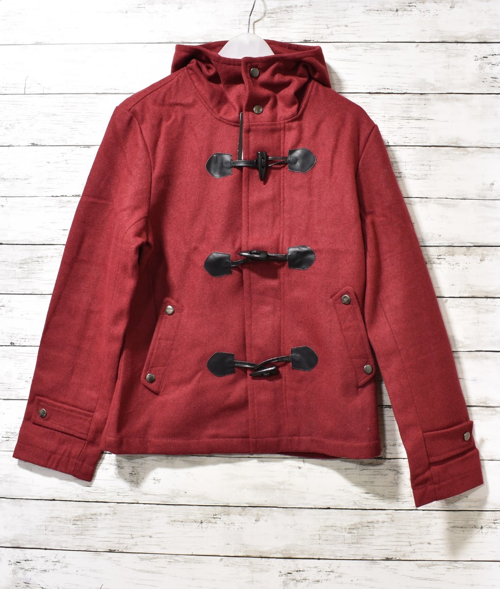> ダッフルコート メンズ コート メルトンウール ワイン ボルドー系 Mサイズ フード付き 上着 アウター ジャケット 未使用