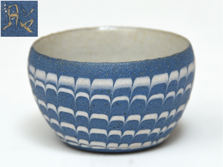 > 菊池昭(造) 益子焼 鶉文ぐい呑み 師 加守田章二 日本伝統工芸展入選 益子窯 陶磁器 酒盃 酒器 美品 現代工芸 うずら文 z5948a