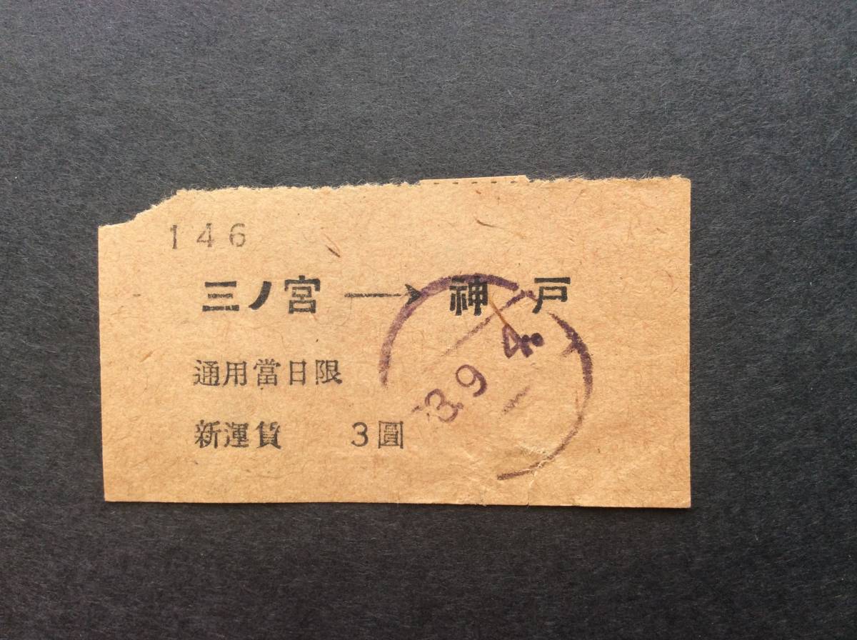 - 運輸省 三ノ宮→神戸 新運賃 昭和23年 軟券 終戦直後