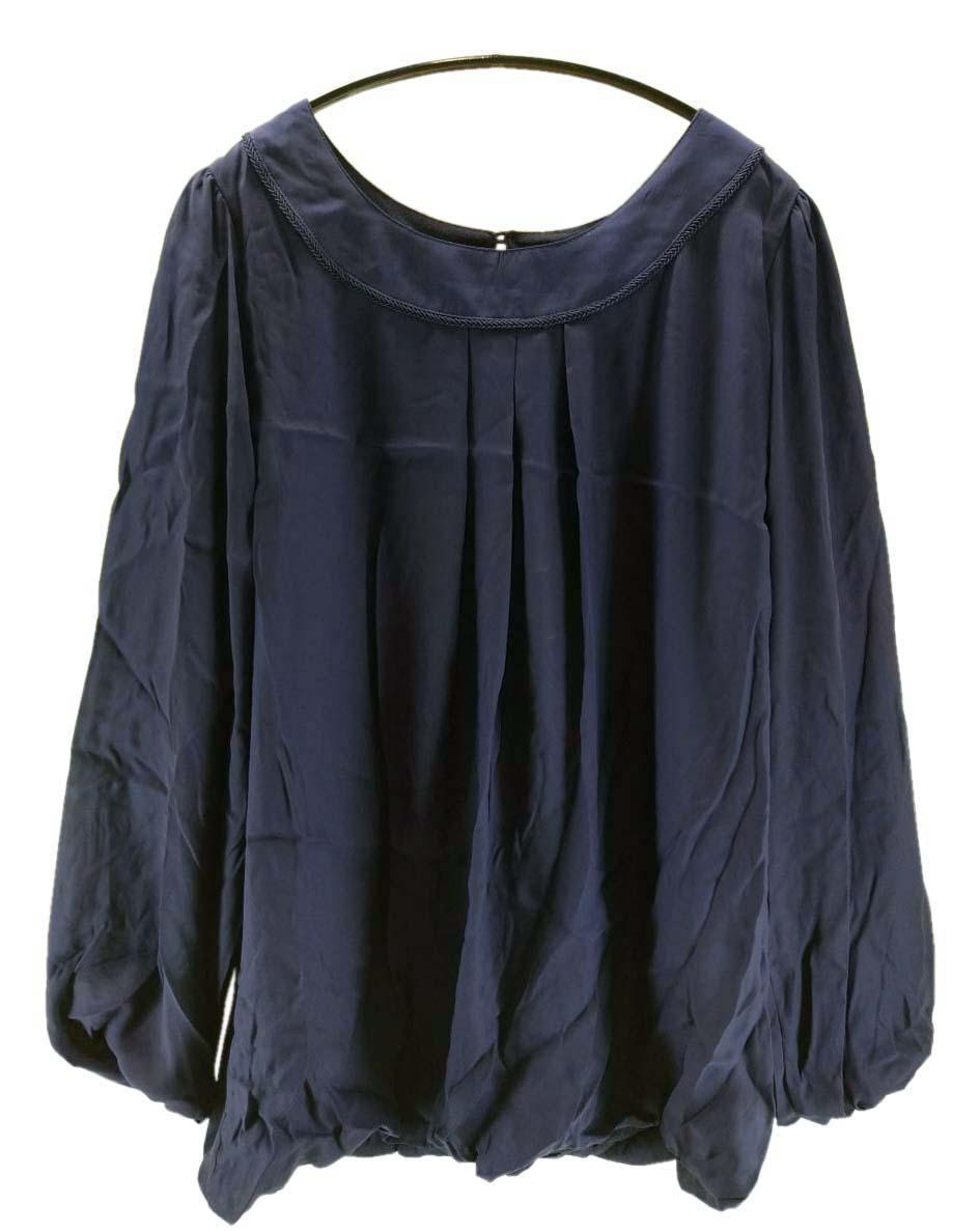 - SS2229◇ 新品 トップス チュニック バルーン裾 バルーン袖口 後ろ襟ボタン 前襟レース 胸元プリーツ 21ABRサイズ ネイビー 送料 510円