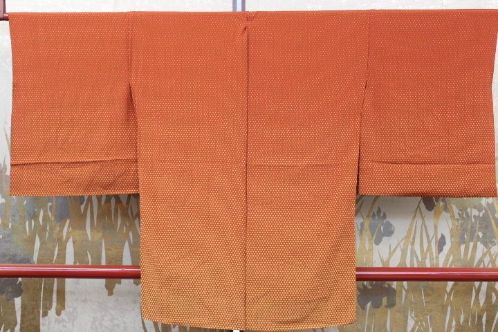 - きもの今昔6140 仮縫い未仕立て 羽織・道行・道中着用 正絹一越地大小ドット模様 煉瓦色