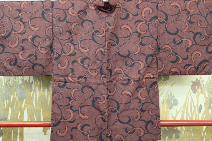 - きもの今昔6142 お羽織コレクション 先染お召地大島風合おしゃれ羽織 黒と煉瓦色 羽織丈81㎝