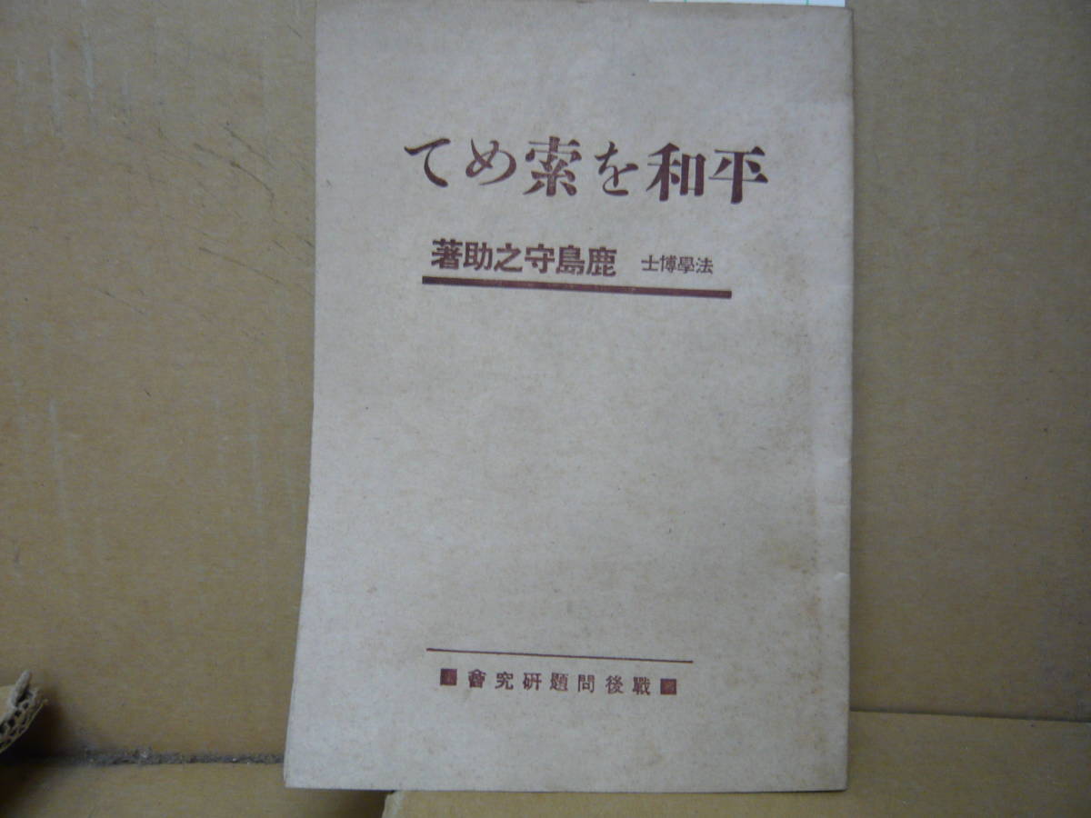 - Bb2320-a 本 平和を索めて 法学博士 鹿島守之助 著 戦後問題研究會