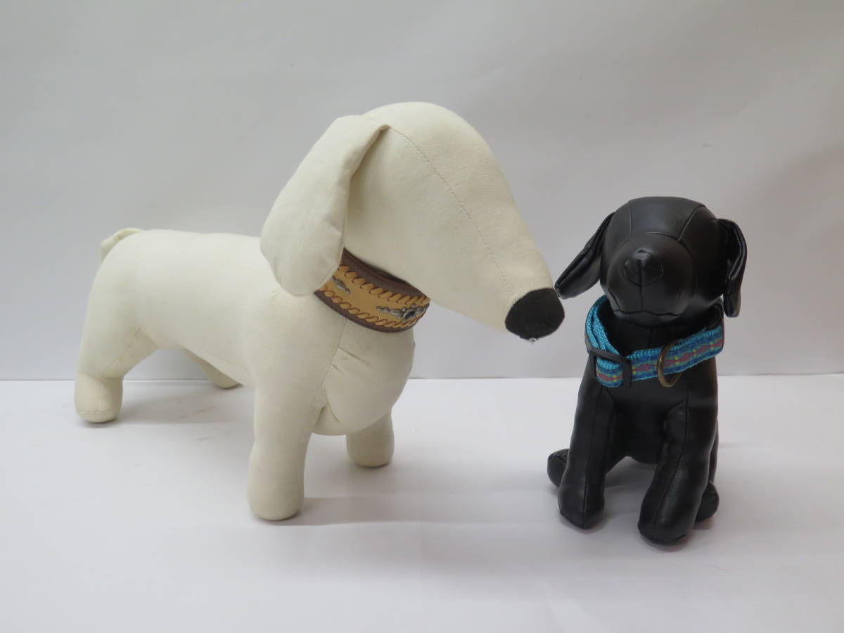 - 「犬のディスプレイ用ぬいぐるみ 2体」「小型犬用?カラー/首輪 2点 ネイティブ系本革製とペンドルトン(ブルー)」まとめて