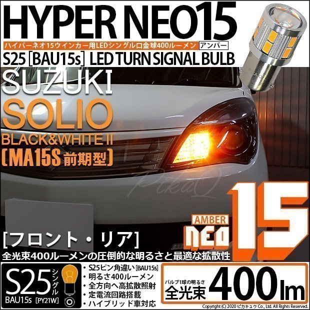- スズキ ソリオ ブラック&ホワイト2 (MA15S 前期) 対応 LED ウインカーランプ S25S BAU15s NEO15 400lm アンバー 2個 7-B-8