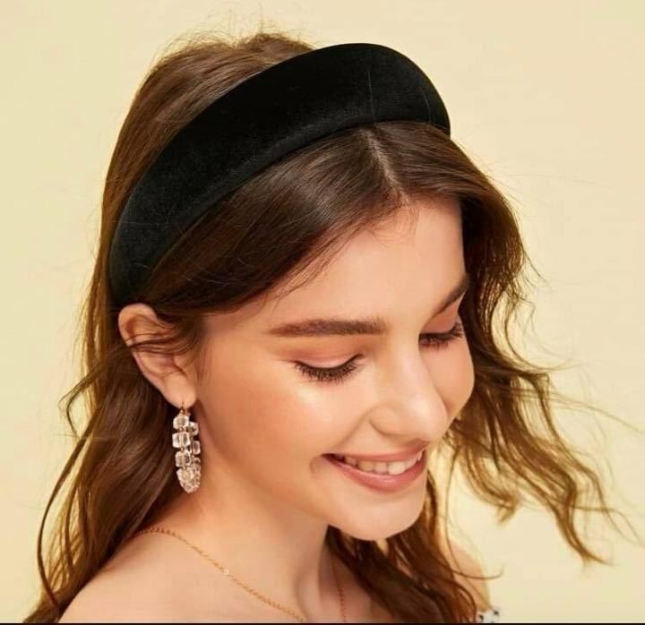 - ベロアぷっくりカチューシャ ブラック 黒 ヘアアクセサリー レディース