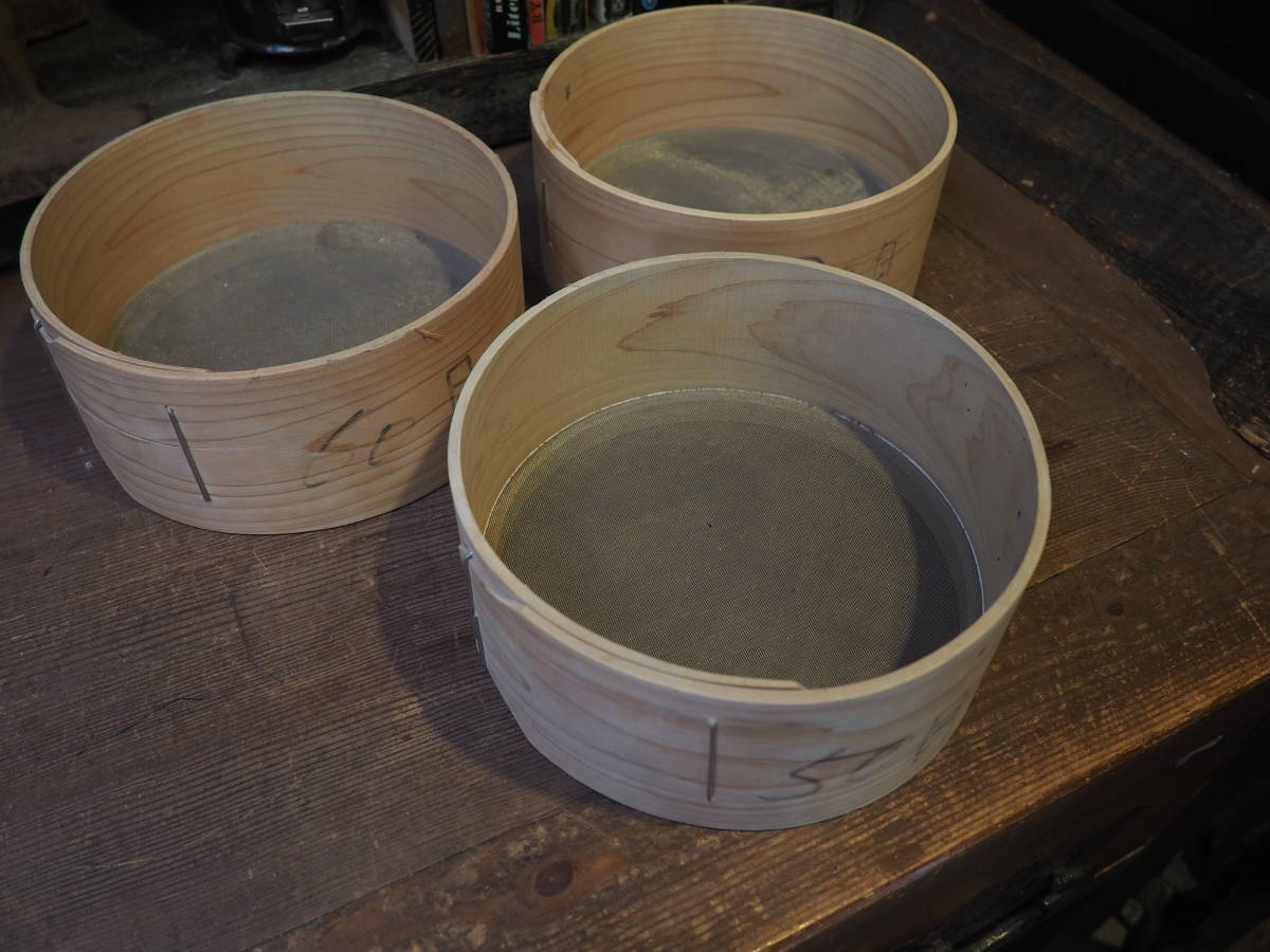 - 【ものすごく目の細かいフルイ3個】50目60目80目水嚢古道具アンティーク籠骨董インテリア篩網インダストリアル笊こしき和菓子陶芸料理材料