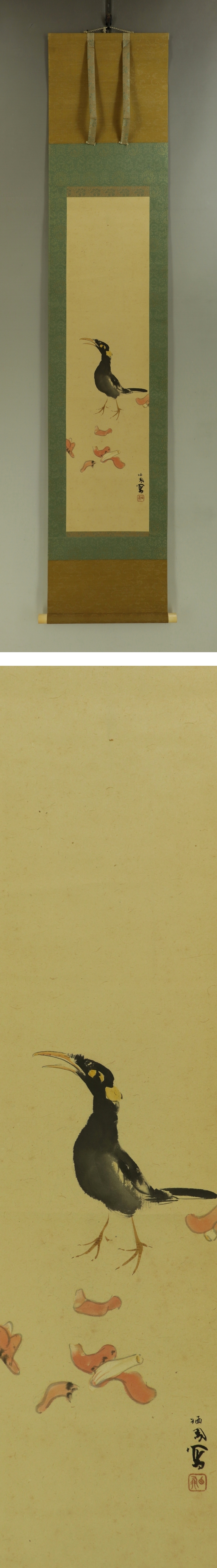 - 【模写】竹内栖鳳【木蓮に九官鳥】◆紙本◆合箱◆二重箱◆掛軸 t08059b