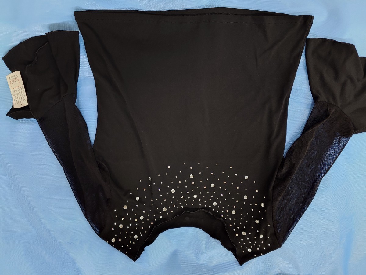 - 社交ダンス ラテン ベリー 衣装 トップス 黒ラインストーン付M