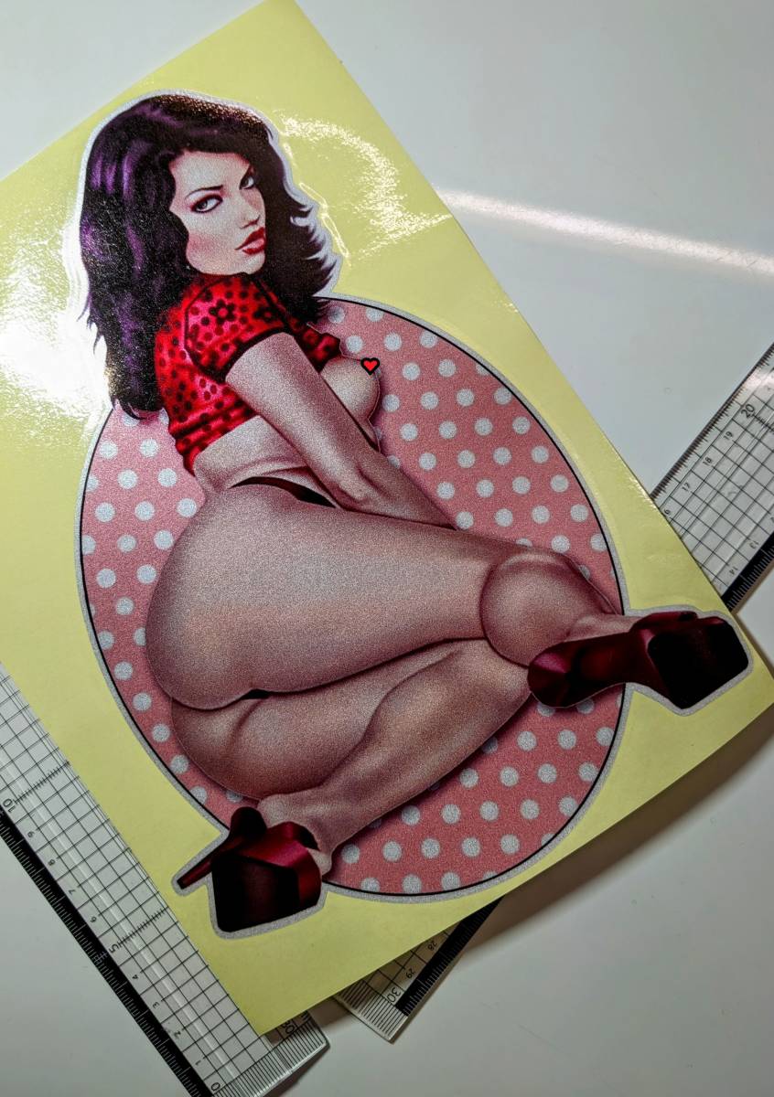 > 【特大!250㎜x176㎜希少キラキラ素材♪ピンク水玉】 アート ピンナップガール★セクシーガール★セクシーステッカー★レトロステッカー