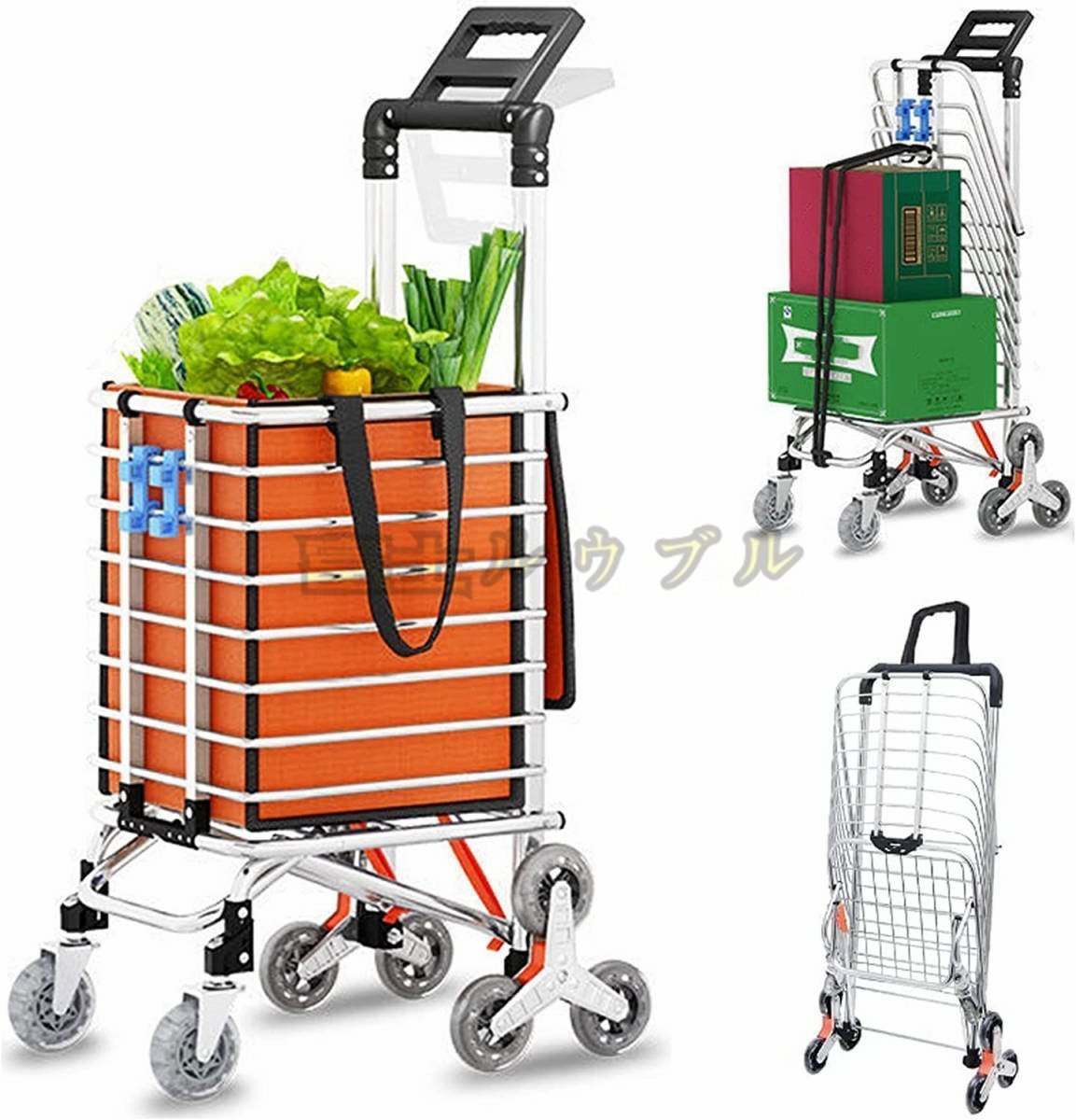 - 実用☆ 折りたたみ式 キャリーボックス 軽量 大容量35L 高齢者 ショッピングカート 階段昇降 買い物カート 台車 8輪 アルミ製 橙色+水晶の
