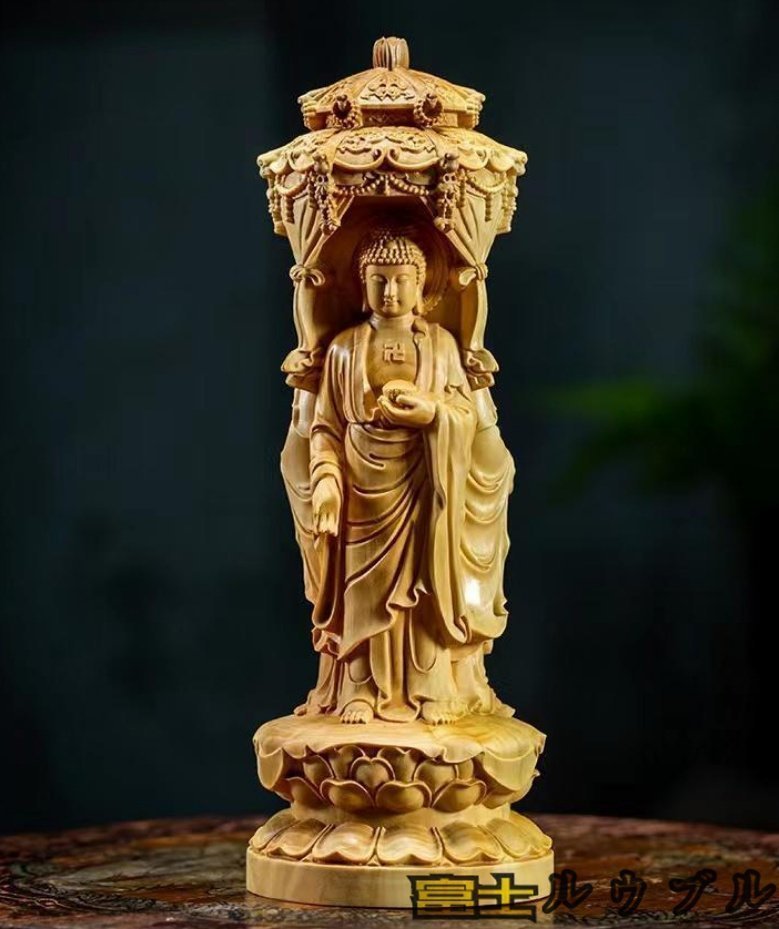 - 極上品★ 黄楊木 木彫 芸術品 西方三聖仏像 華厳 置物 阿弥陀仏 大勢至浄瓶観音菩薩