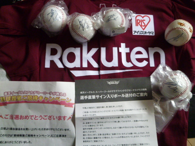 - 楽天ゴールデンイーグルス球団公認球 釜田佳直 福田将儀 磯部公一 菅原秀 近藤弘樹 5名直筆サインボール 投げ入れ投げ込みボール 抽プレ品