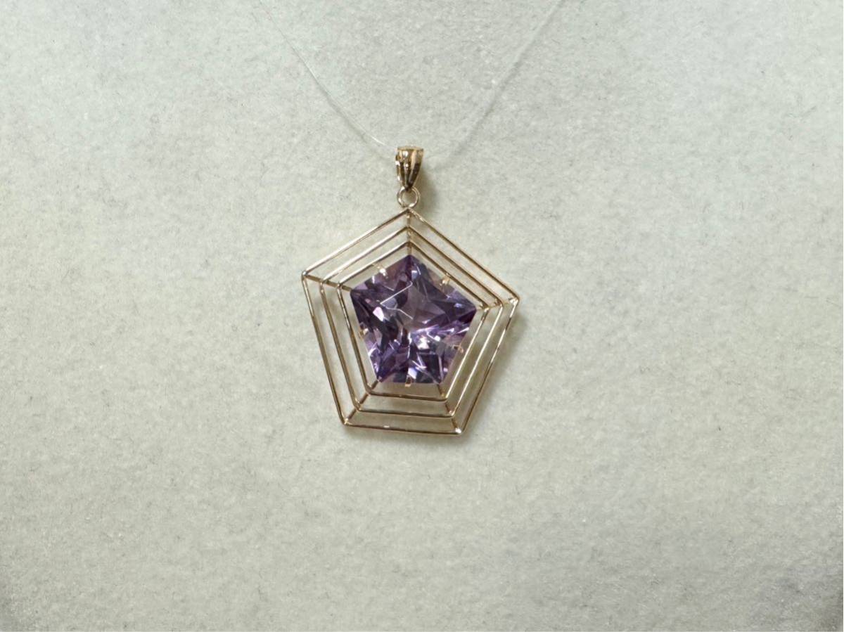 - 【質屋 尾張屋商店 東京】 ☆仕上済☆ K18YG アメジスト ペンダント 紫色宝石 レディース きれい