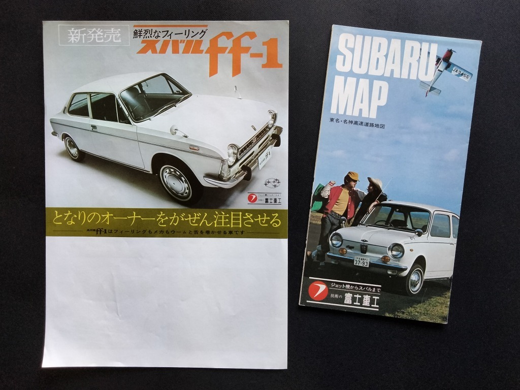 > 古い スバル 車種ラインナップ 製品案内 広告 チラシ 当時物 2点セット!☆ SUBARU 360 R-2 ff-1 サンバー 富士重工 絶版 旧車カタログ