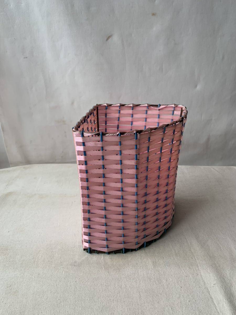 - ポップなカラーリングの小振りなコーナーゴミ箱 昭和レトロ小物入れカゴ古道具アンティークビンテージ店舗什器インテリアディスプレイ雑貨