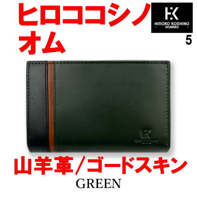 - ネイビー ヒロコ コシノ オム L字 ラウンド hks-5 折財布 山羊革 ゴードスキン