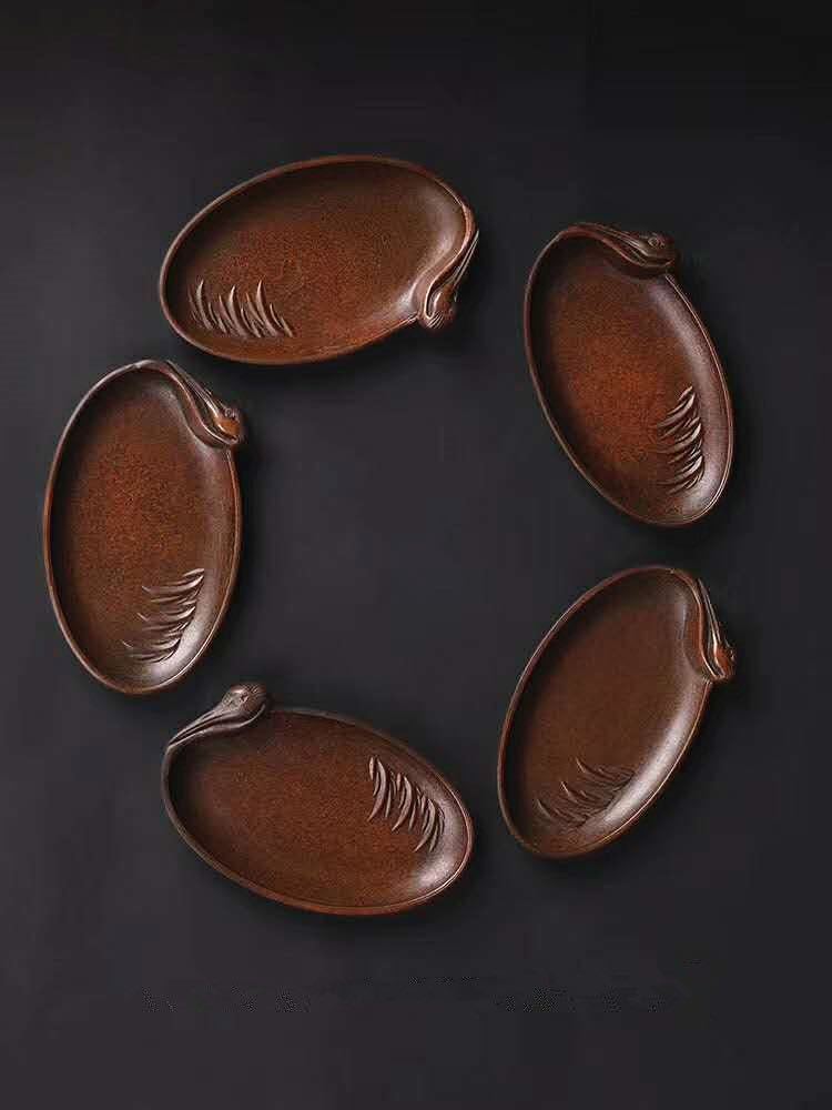 - シンプル上品 極美古銅煎茶道具 質感 細工銅鶴茶托五客 長寿の鶴 優雅な客 優しく良い雰囲気の会談に繋がり 好客