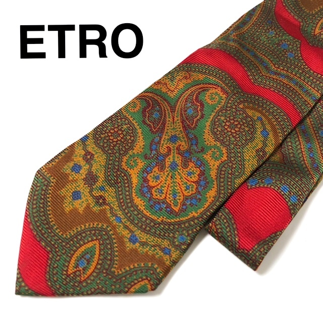 - 二点以上で送料無料! 2A40 イタリア製【極美品】ETRO エトロ シルク100% 高級ネクタイ 剣先幅9㎝ ペイズリー柄 ブラウン グリーン