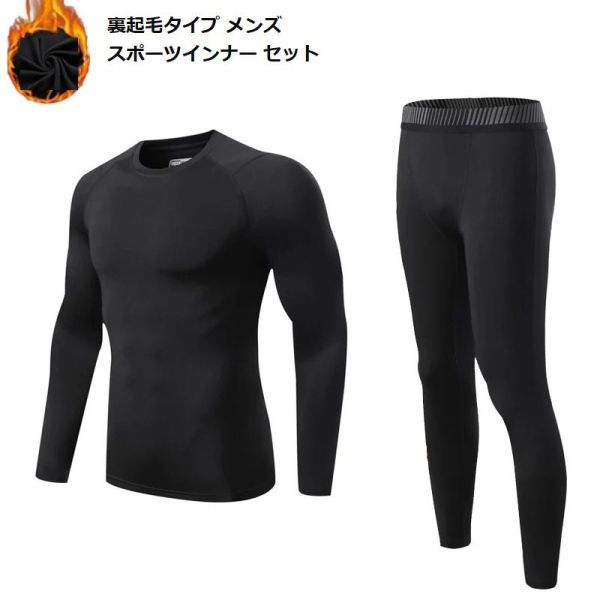 > 新品 裏起毛 スポーツインナー 上下セット タイツ メンズ No1 Lサイズ フリース パンツ トレーニング アウトドア 加圧 スパッツ