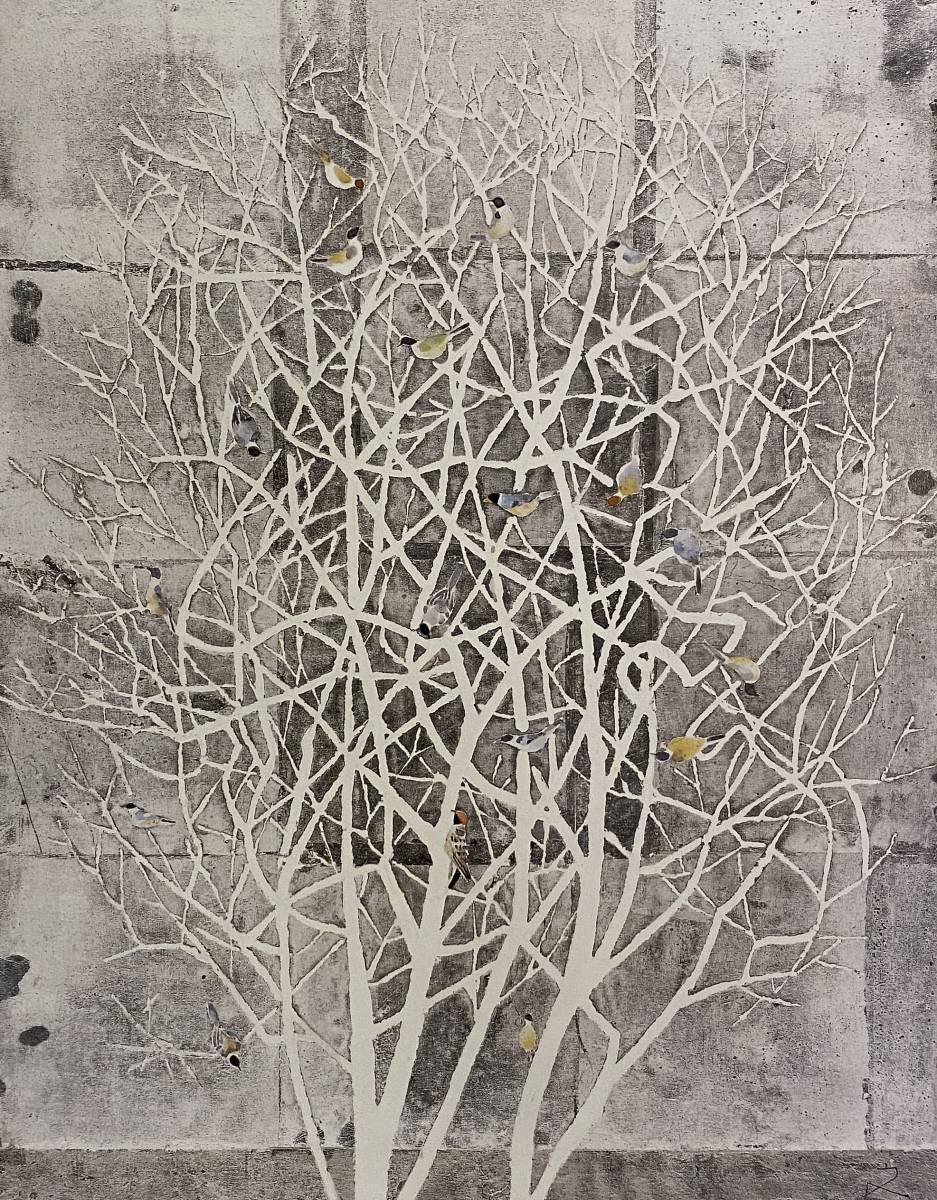 - 堀文子、〈冬の鳥〉、希少画集画、高級新品額・額装付、状態良好、送料無料