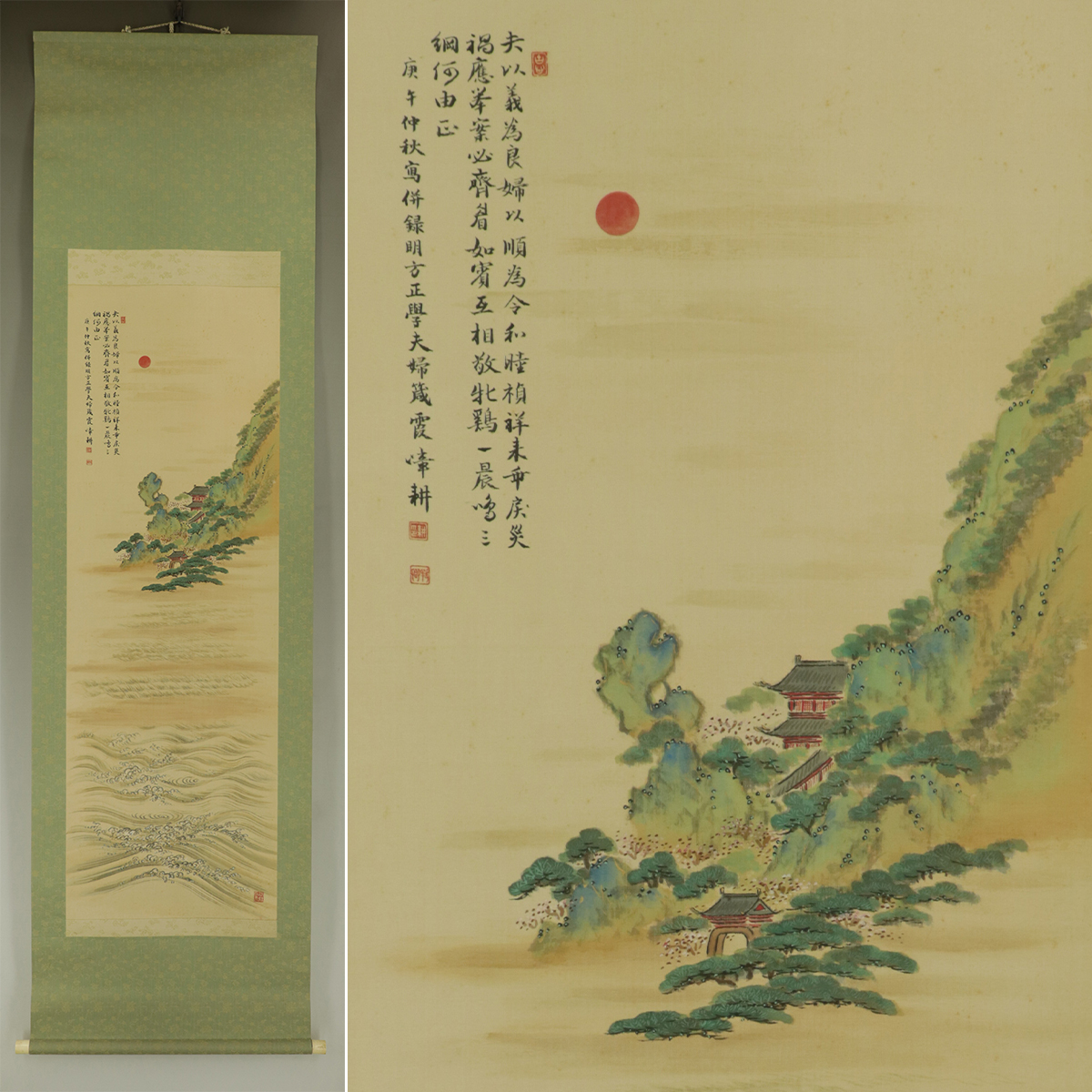 - 【真作】谷道霞嶂【福山寿海図】◆絹本◆共箱◆掛軸 t04055