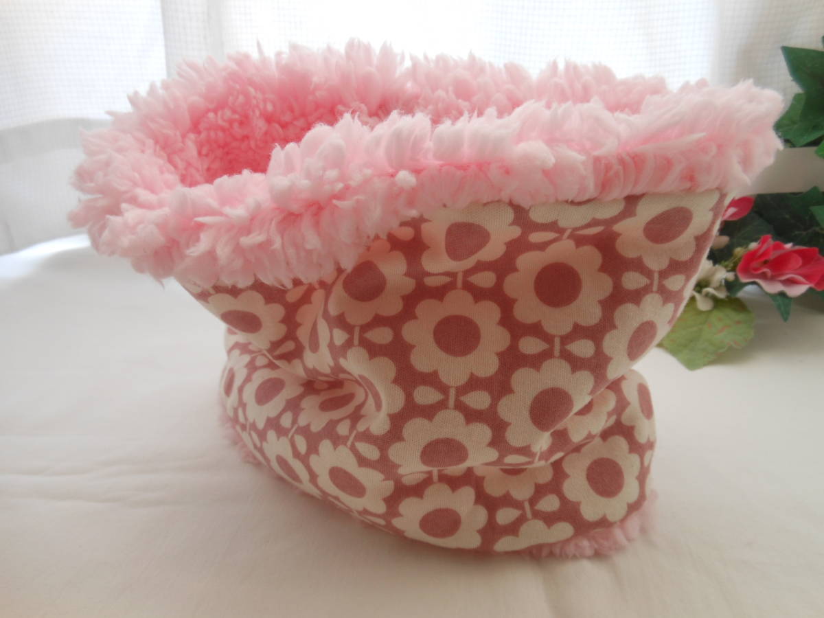 - ネックウォーマー 北欧のお花デイジー ピンク プードルボア 子供 ハンドメイド ♪
