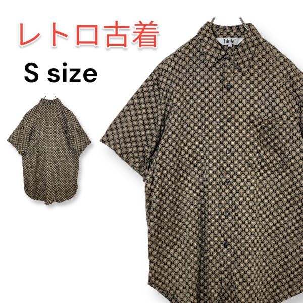- 90s 総柄シャツ 半袖シャツ Sサイズ 古着 レトロ ポリシャツ 匿名配送