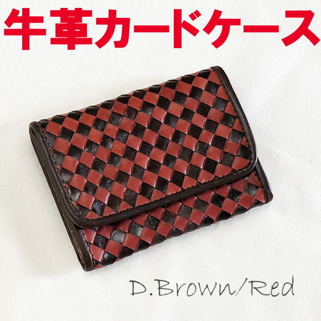 - ブラウンレッド 牛革 メッシュ編込 098 名刺入 カードーケース