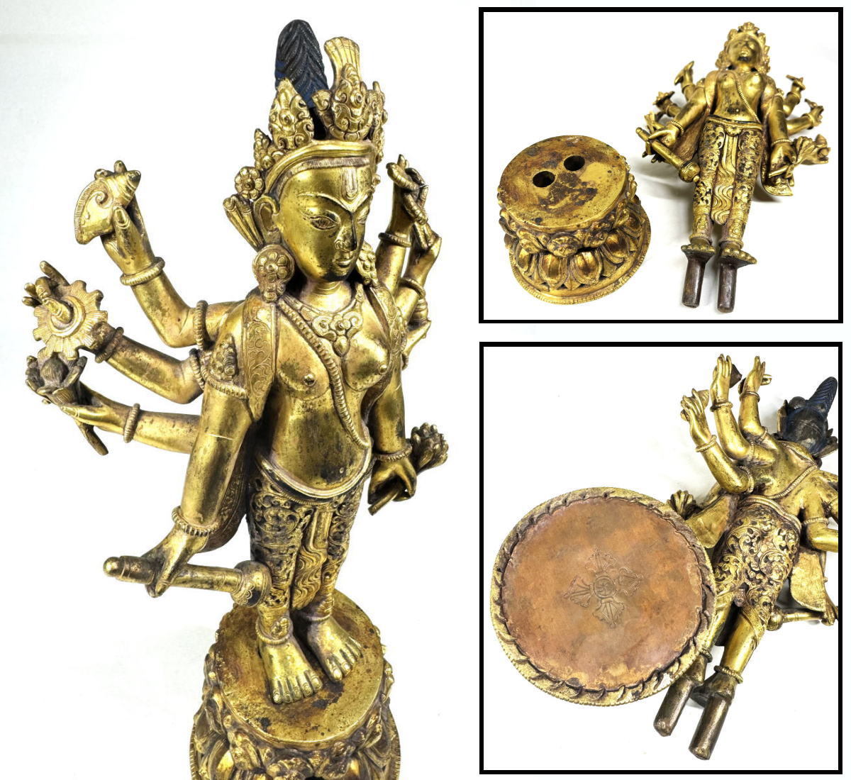 > 【送料無料】古銅塗金 八臂観音立像 伝世品 古佛像 時代物 佛教美品 仏教美術 ウブ品 入手困難 骨董 古玩 中国古玩 (旧家蔵出し) WWST035