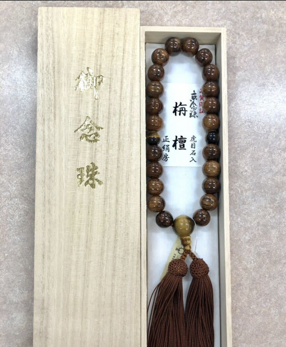 - 栴檀 念珠 茶水晶 男性用 京念珠 桐箱入り 葬儀 正絹房 数珠