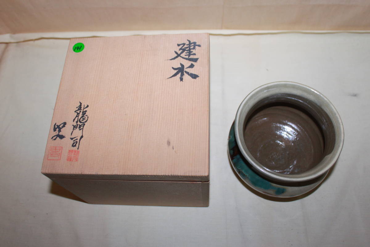 - ●黒薩摩 龍門寺焼 緑釉 建水 立田光造◆共箱 茶道具抹茶碗 薩摩焼