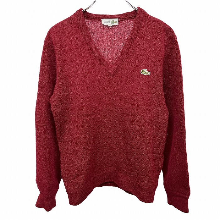 - シュミーズ ラコステ CHEMISE LACOSTE ニット セーター Vネック 胸にワニのパッチ 長袖 ニューウール100% 2 レッド 赤 レディース