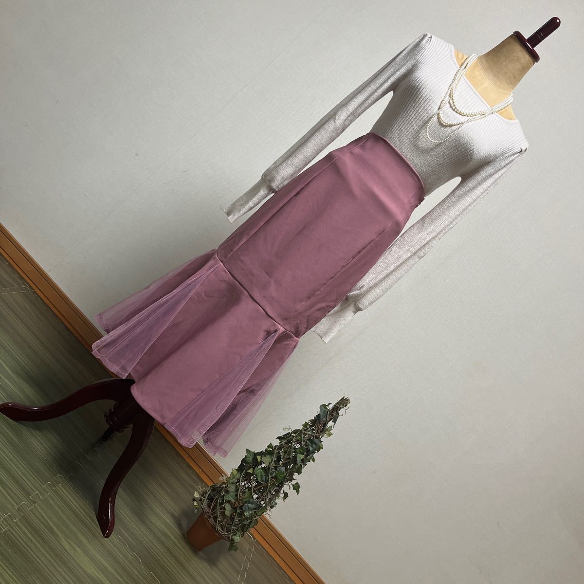 - 3-6新品 clear クリア ロング丈チュール切替マーメイドスカート 裾ボリュームフレアスカート ピンク 9号 M