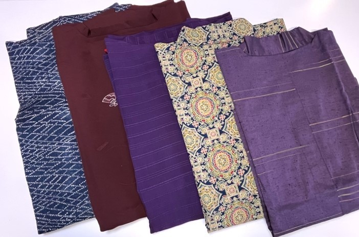- 花とら●リサイクル道中着 5枚まとめて 美品 着用可能 リメイク 素材 紬風 更紗風 蚕糸風 240102