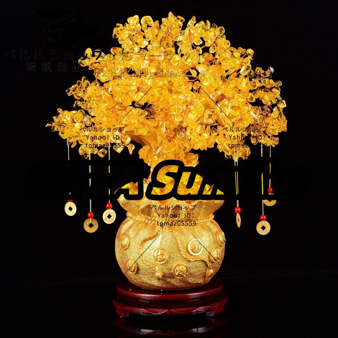 - 招財樹 金のなる木 黄水晶 シトリン 風水アイテム インテリア 金運祈願 開運 商売繁盛祈願 パワーストーン お