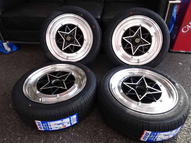 - スターシャーク ブラックポリッシュ 6J-14 100/4H 海外製 165/55R14 新品 軽自動車