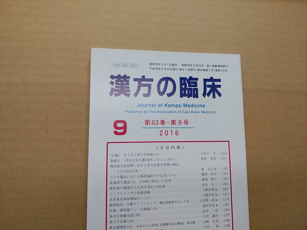 - 漢方の臨床 2016(平28)年9月 第63巻9号 通巻745号 177gクリックポスト185円可
