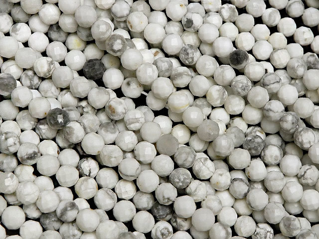 - ハウライト 面カット 丸玉 3mm プレミアムカット 1連販売 / 7-1 HA3MC-X