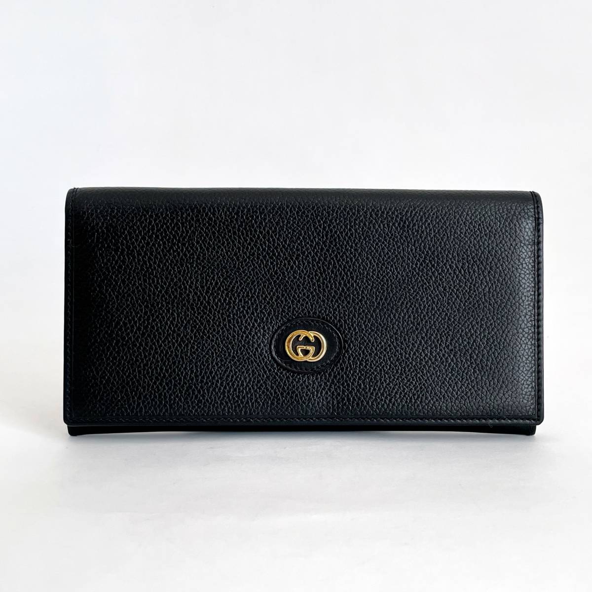 - 美品☆GUCCI グッチ インターロッキングG 長財布 ブラック レザー 本革製 ゴールド金具 二つ折り 正規品