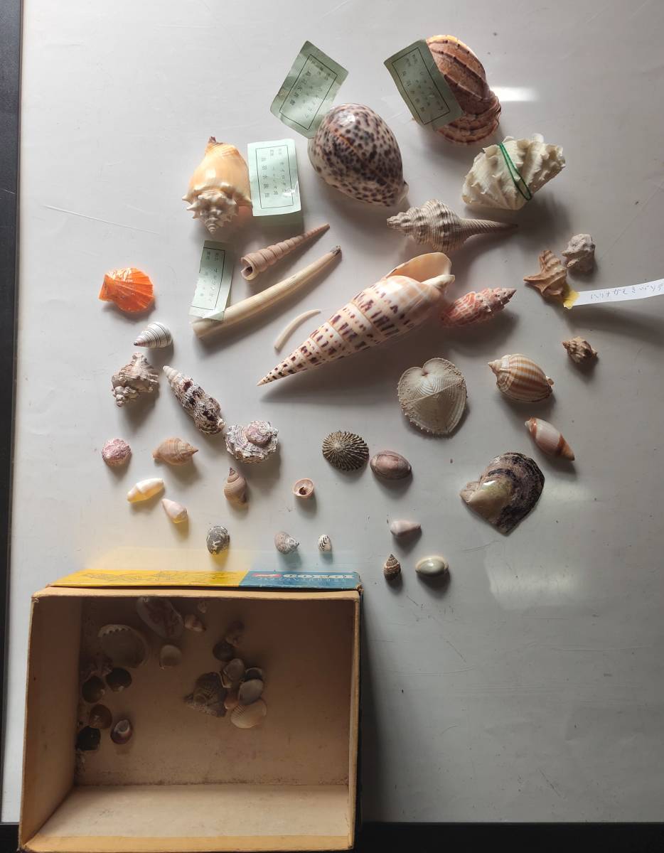 - 貝殻/ひれじゃこがい、ホシダカラ,ハリナガンモミズソデ、ショクコウラ、かさがい アオイガイ(ハートシェル)その他/(B6貝M)