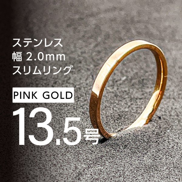 - J034 ステンレスリング 2mm平打ちリング ピンクカラー 13.5号