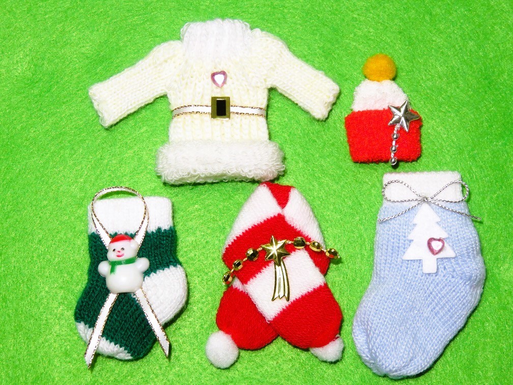 - 【☆X'masニットコサージュ5個☆】K4 クリスマスブローチ ☆オリジナルニット おうちでのクリスマスパーティー クリスマス会 忘年会