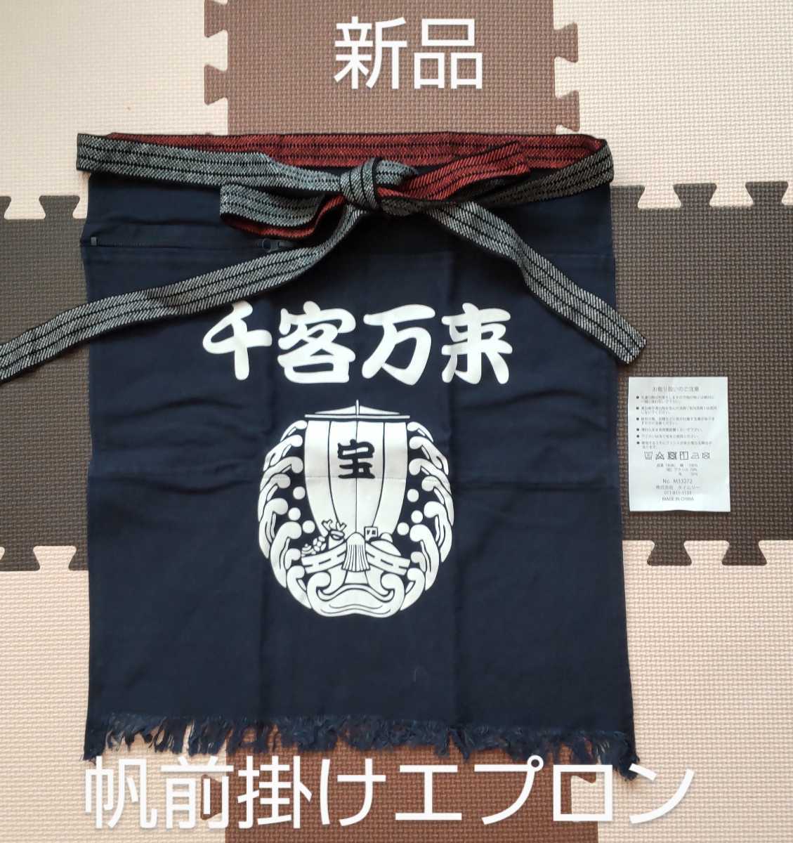 - 昭和レトロ風 帆前掛けエプロン 千客万来 宝船 ポケットファスナー付き 新品 未使用品