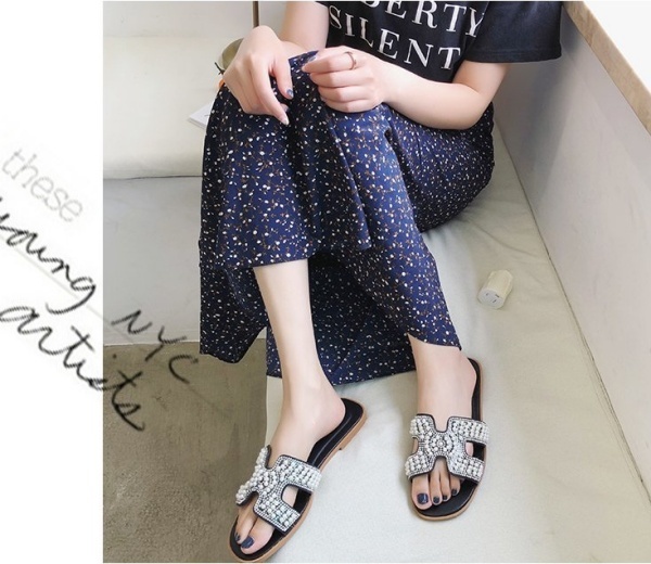 - 送料無料★新品 サマーサンダル パール ビジュー サンダル 履きやすい 可愛い 華やか おしゃれ★38/ブラック