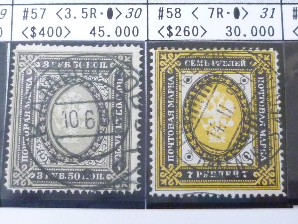 - 24 A №3 フィンランド切手 クラシック 1891-92年 SC#57-58 3,5R・7R 計2種 使用済 【小売価格 75,000円】 ※説明欄必読