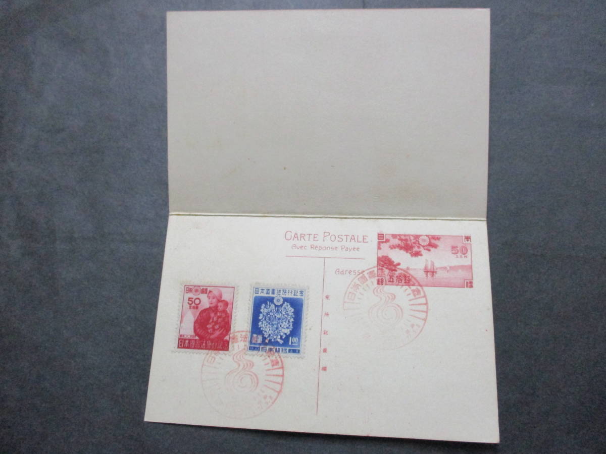 - ★1947年日本国憲法記念 記念印 2種完:瀬戸内海連合はがき(往復)貼り付け★