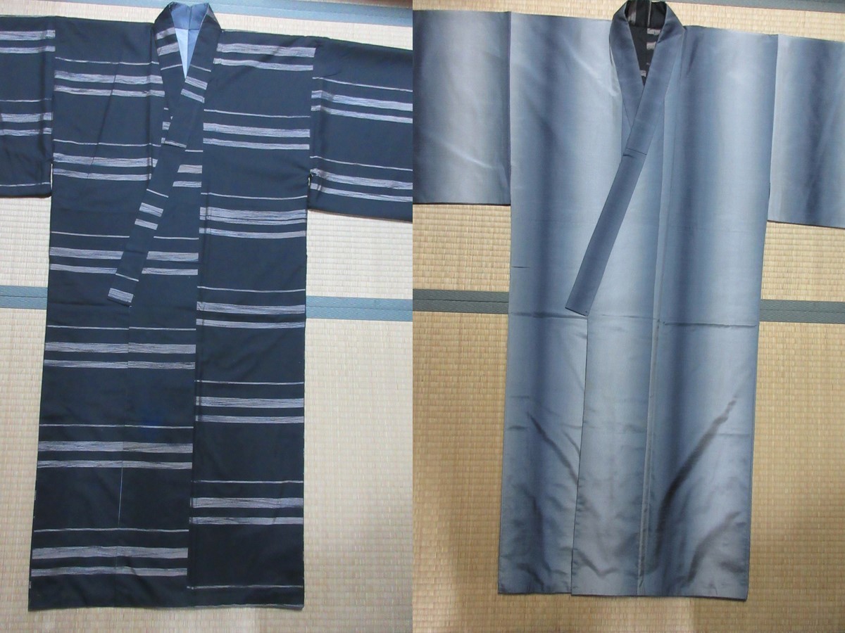 - ☆☆箪笥の整理 男物 正絹 往路用 リバーシブル 長着 本場大島紬・西陣暈しお召★★