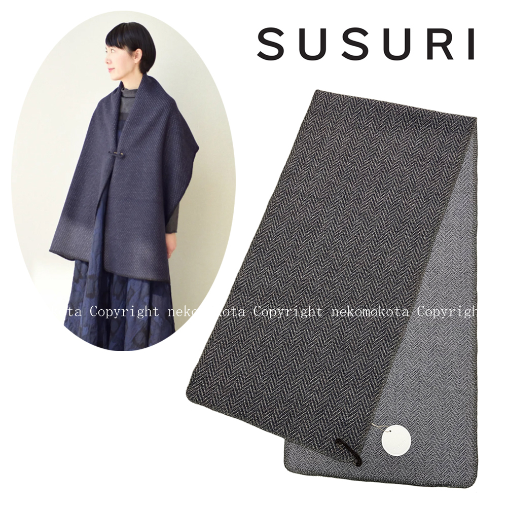 - 未使用 タグ付き ススリ ウール ピン付き ケアー ストール マフラー herringbone ヘリンボーン susuri ショール